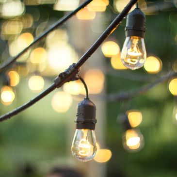 X Formation Freestanding Black Steel Pole & Stand Bistro String Lights